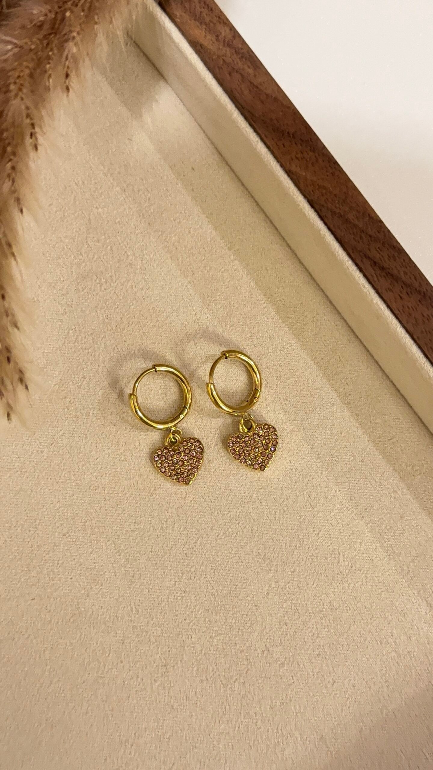 Heart drop hoops (pink stone)